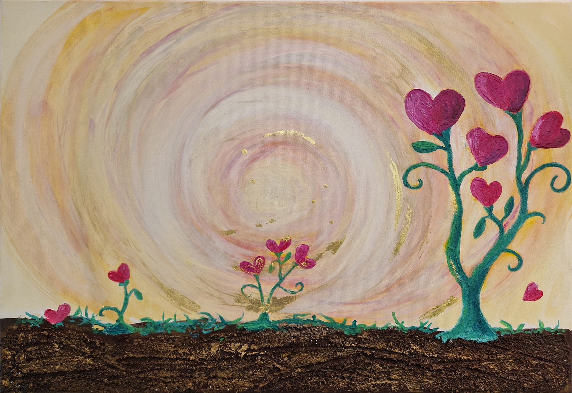 Das Bild oben ist entstanden, nachdem ich tagelang den Ohrwurm „sowing the seeds of love“ von Tears for Fears hatte. Wer Liebe sät, wird Liebe ernten. Wer nur klagt, sich ärgert, mit sich selbst meckert wird nach dem Gesetz der Ressonanz nur noch mehr davon bekommen. Eigentlich logisch.